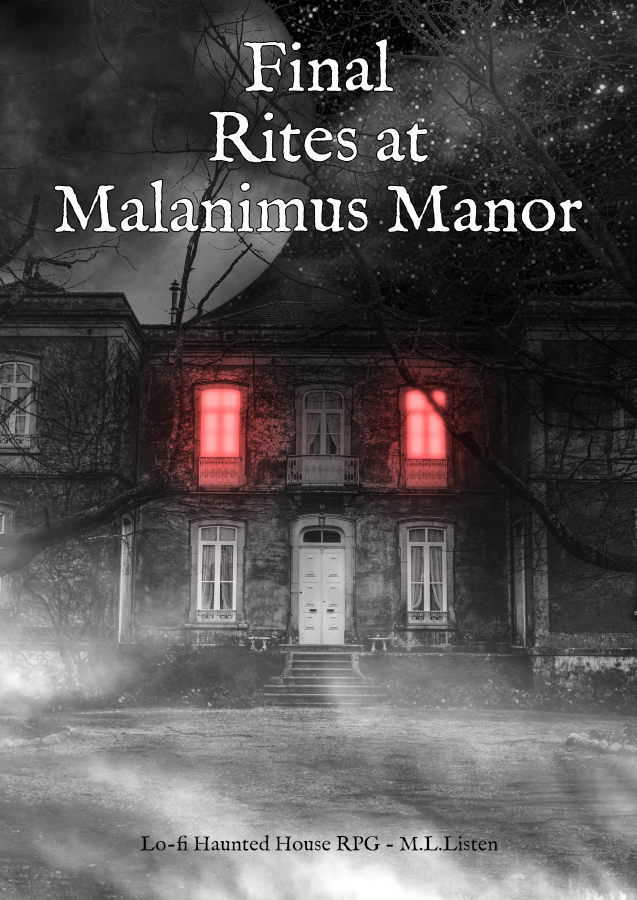 Final Rites at Malanimus Manor is a rules-light paranormal investigation RPG about fear, fragile sanity, and endings that cost something.